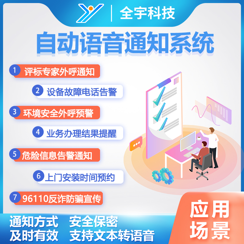 通知系統(tǒng)在預(yù)設(shè)外呼允許時段時對專家發(fā)起呼叫,專家接聽完畢需按鍵確認(rèn)是否參加,全宇智能通知系統(tǒng)實時將外呼人員是否接通、專家是否參加等信息回傳給抽取系統(tǒng),由抽取系統(tǒng)記錄并確認(rèn)是否需要補抽及再通知等,對于確認(rèn)參加投標(biāo)的專家,語音通知系統(tǒng)還可以發(fā)送短信的方式進行再次提醒;系統(tǒng)還可以設(shè)定外呼時間段,避免打擾到參與者的工作和生活。